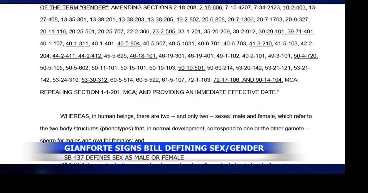 Montana has a new law that defines sex as strictly male or female, based on a person’s reproductive system. Gov. Greg Gianforte signs Senate Bill 437 last week, after legislative